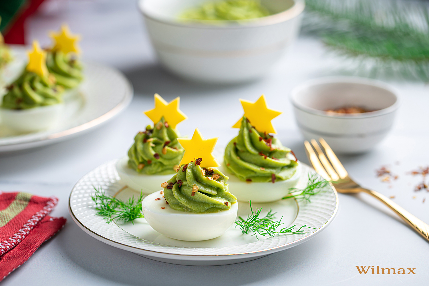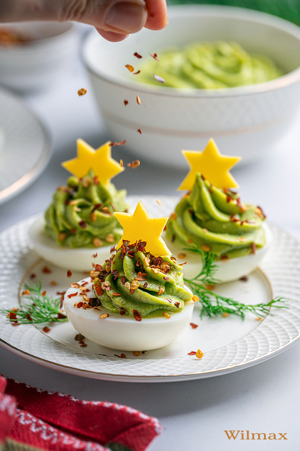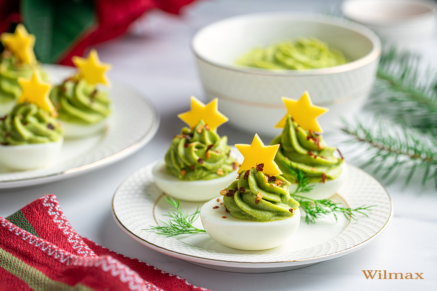 Festive eggs with a light avocado mousse
